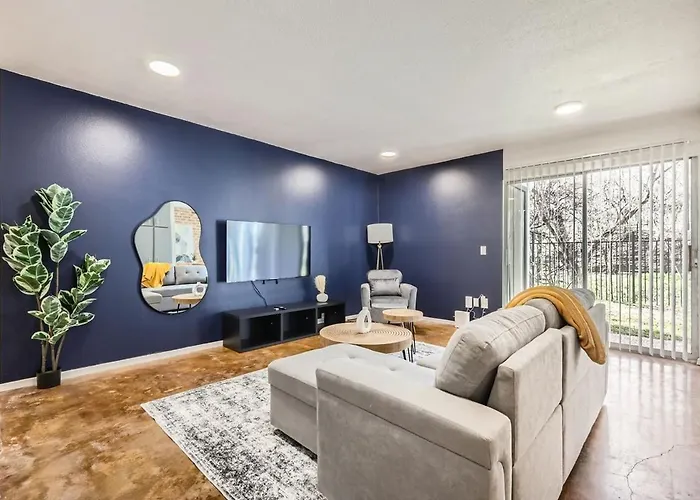 O Your Cozy King Suite Getaway - Sleeps 4 - Pool, Prkg dispõe de cozinha totalmente equipada. Este apartamento de 1 quartos está a uma pequena distância da estação de autocarros Seaholm Station Southbound. Além disso, o acesso para piscina privada garantem uma estadia relaxante aos hóspedes.